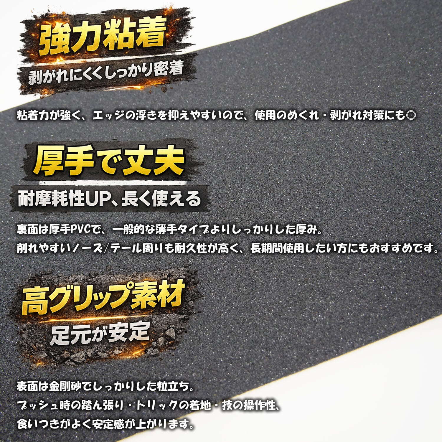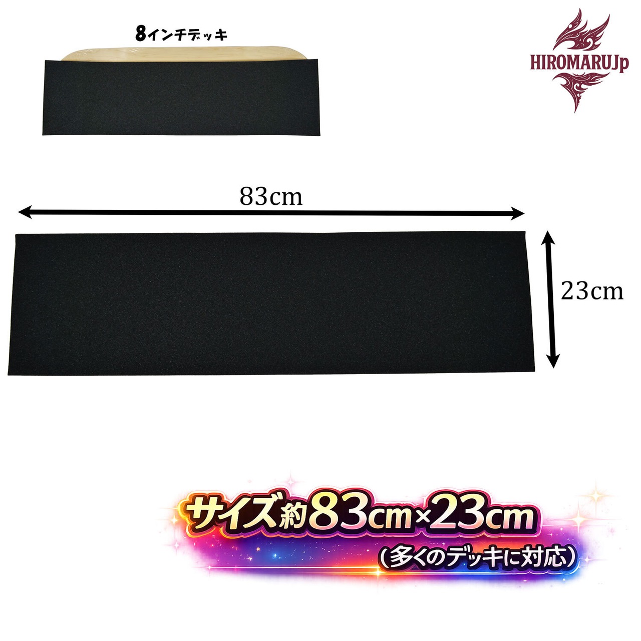 【厚手・高グリップ】 スケボー用 デッキテープ グリップテープ 83×23cm 強粘着 通気穴で気泡が出にくい 貼り替え簡単 防滑 耐久 耐摩耗 強力 接着 滑り止め 交換用 スケートボード ペニー デッキ コンプリート Skateboard Griptape | HIROMARUjp