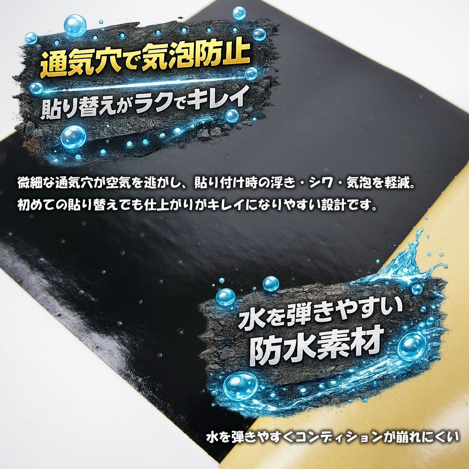 微細な通気穴が空気を逃がしやすく、貼り付け時の浮き・シワ・気泡を軽減。