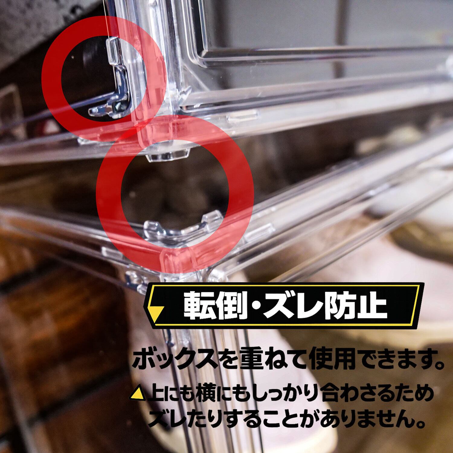 全面クリアで“見せる収納:中身が一目で分かり、部屋の雰囲気を邪魔しにくい見栄え