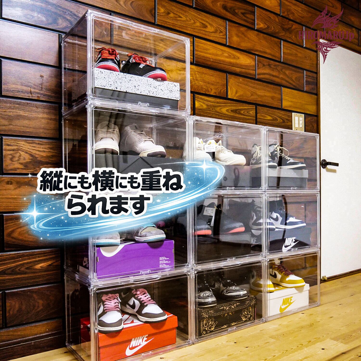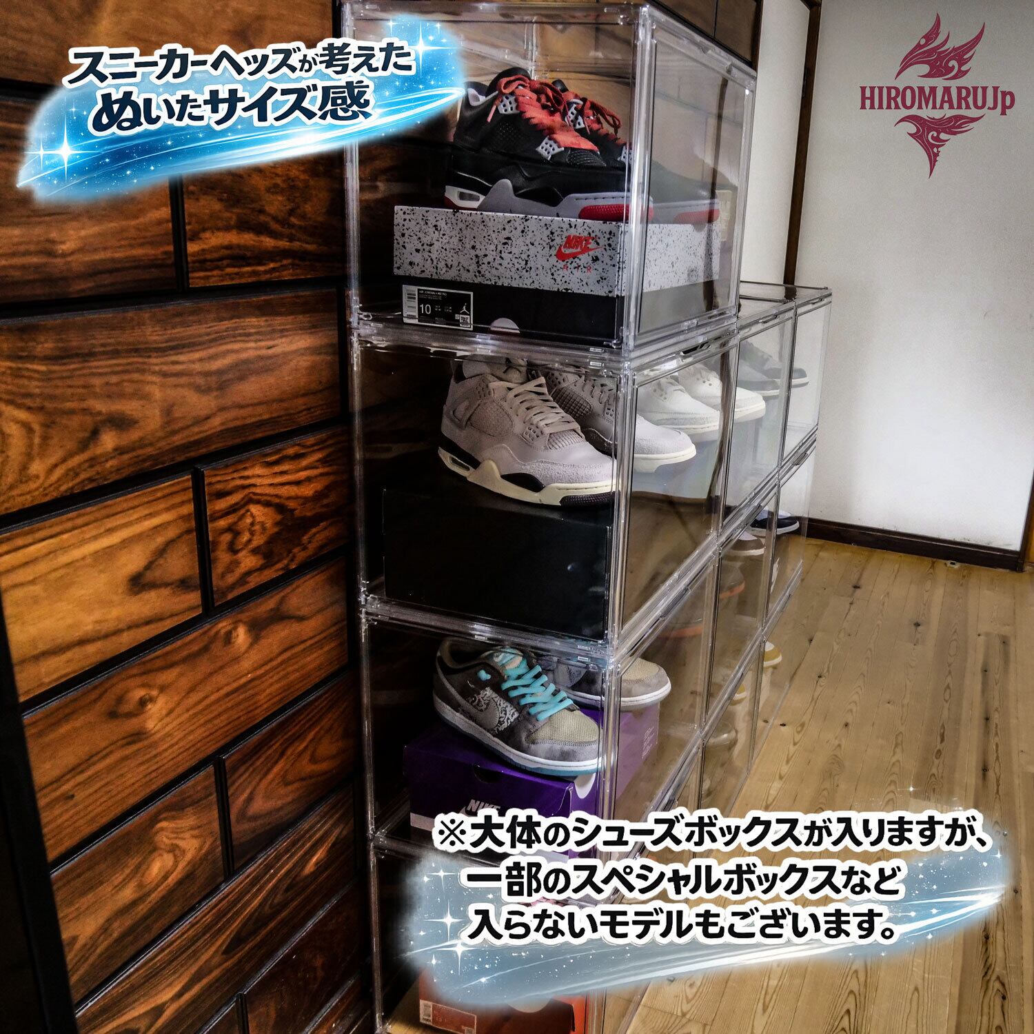 箱も主役”のディスプレイ設計:スニーカー本体だけでなく、箱ごと一緒に飾れるサイズ感