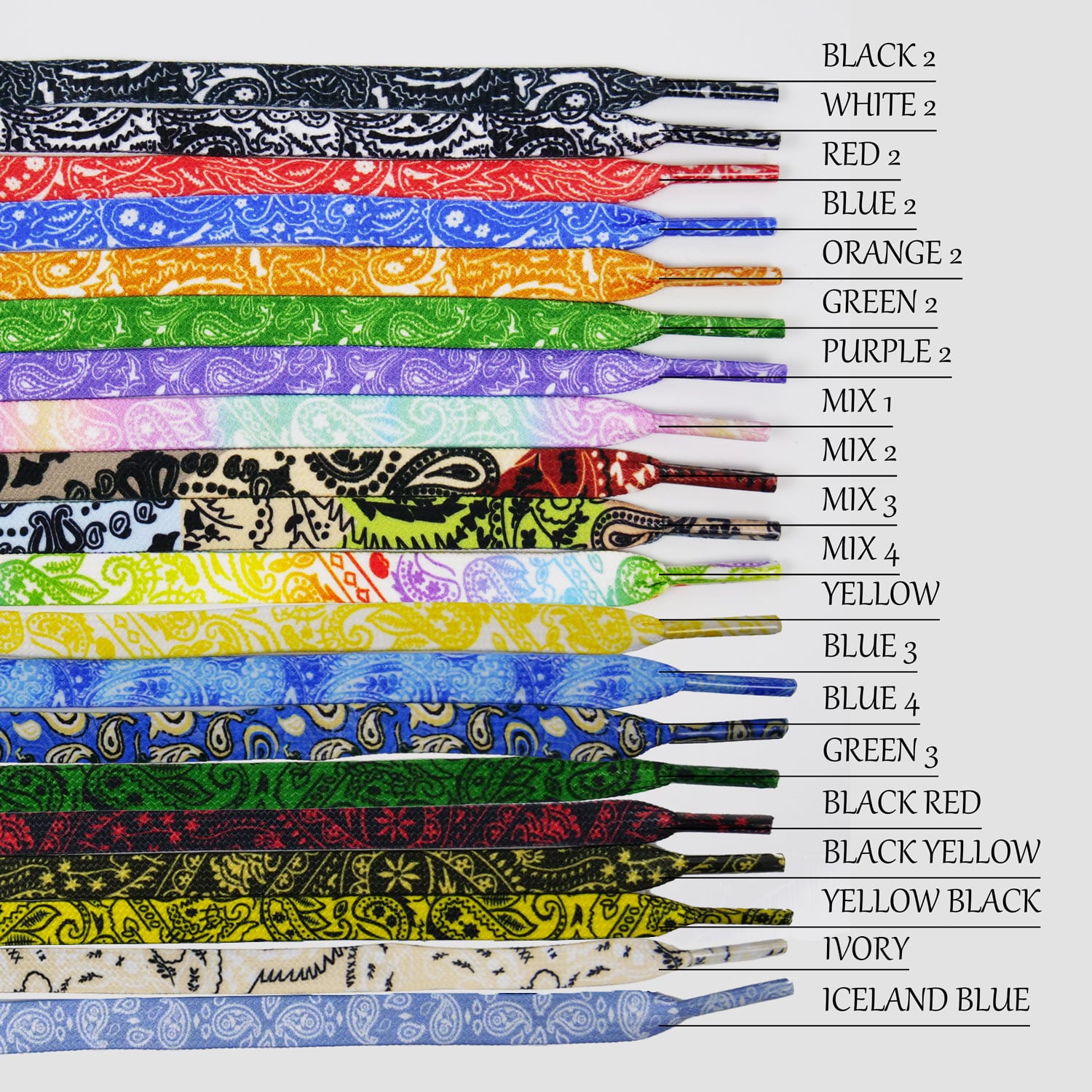 シューレース バンダナ ペイズリー 柄 SHOELACE 靴ひも くつひも 平紐 8mm幅 スニーカー 靴紐 靴 SHOELACE 120cm 140cm 160cm ローカット ハイカット シューズ 全40色