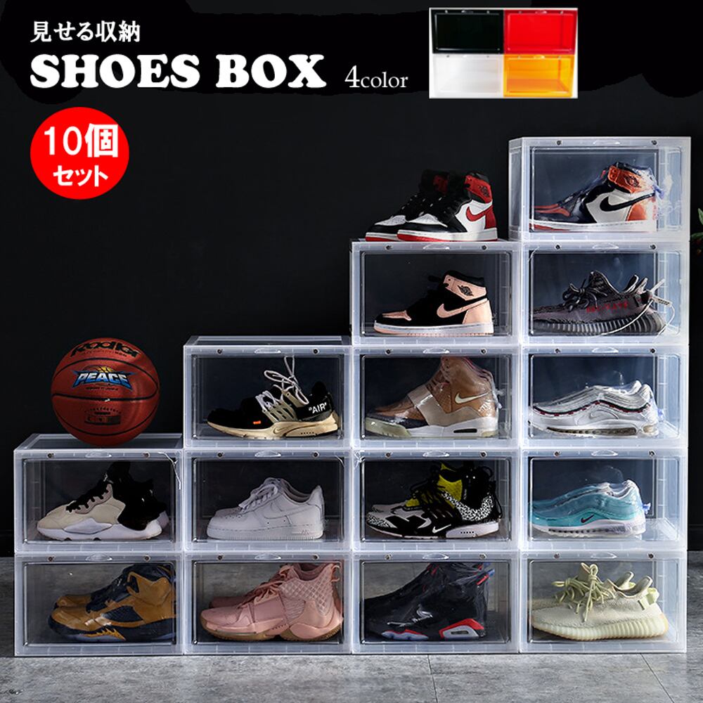 【10個セット】 横型 シューズボックス スニーカーケース スニーカーボックス クリア ブラック レッド オレンジ スニーカー 収納 ケース コレクション 靴 シューズ ハイカット 靴収納 ボックス 透明 下駄箱 靴箱 積み重ね SHOES CASE BOX 全4色 | HIROMARUjp