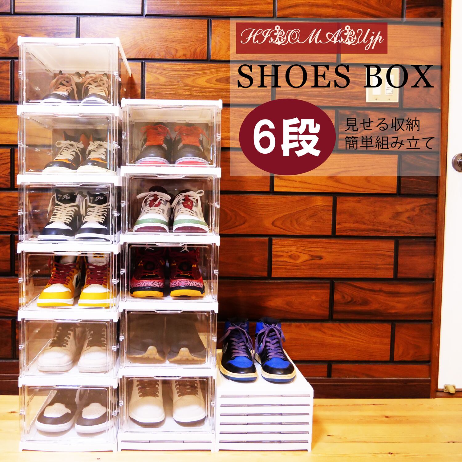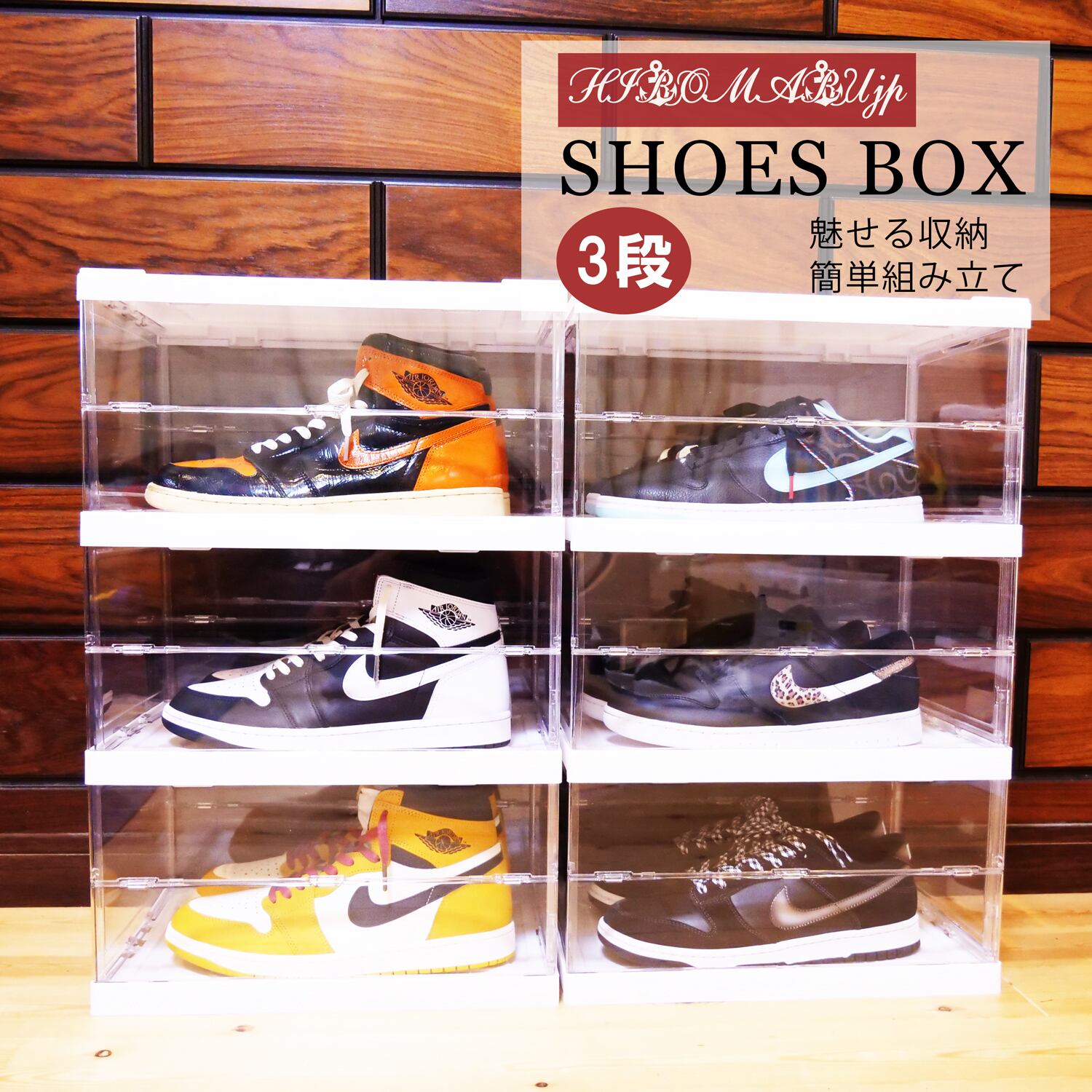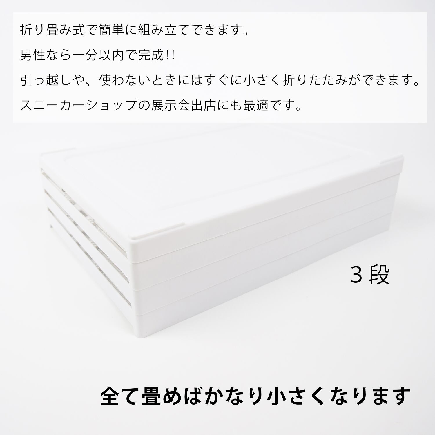 シューズボックス 折りたたみ式 3段 スニーカー ケース ボックス クリア 透明 縦型 収納 コレクション 靴 シューズ ハイカット ローカット 下駄箱 靴箱 積み重ね 簡単組み立て 魅せる収納 SHOES CASE BOX ホワイト 白 | HIROMARUjp