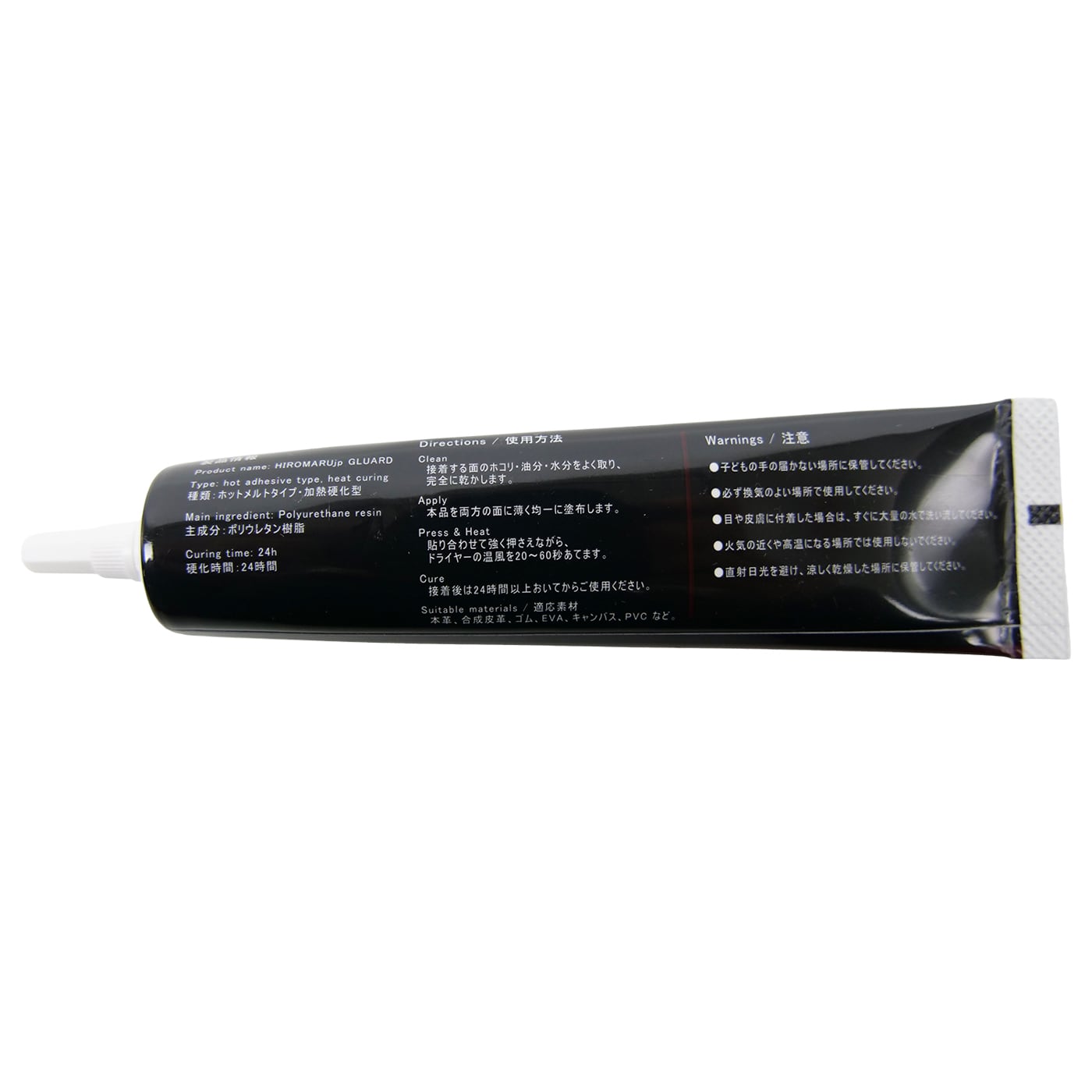 温風で5分以上あて、その後3~5分置いて冷ましてから、強く押し付けて圧着する。